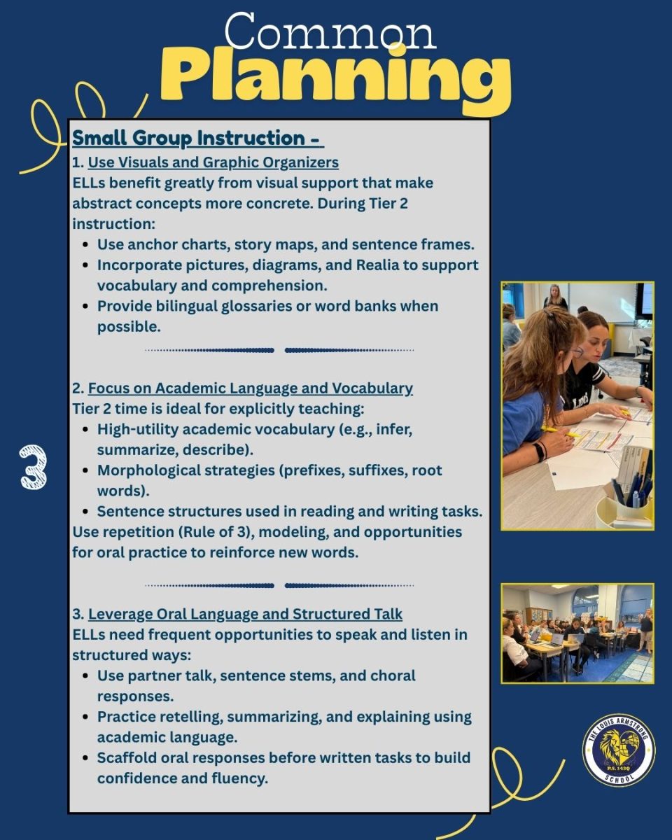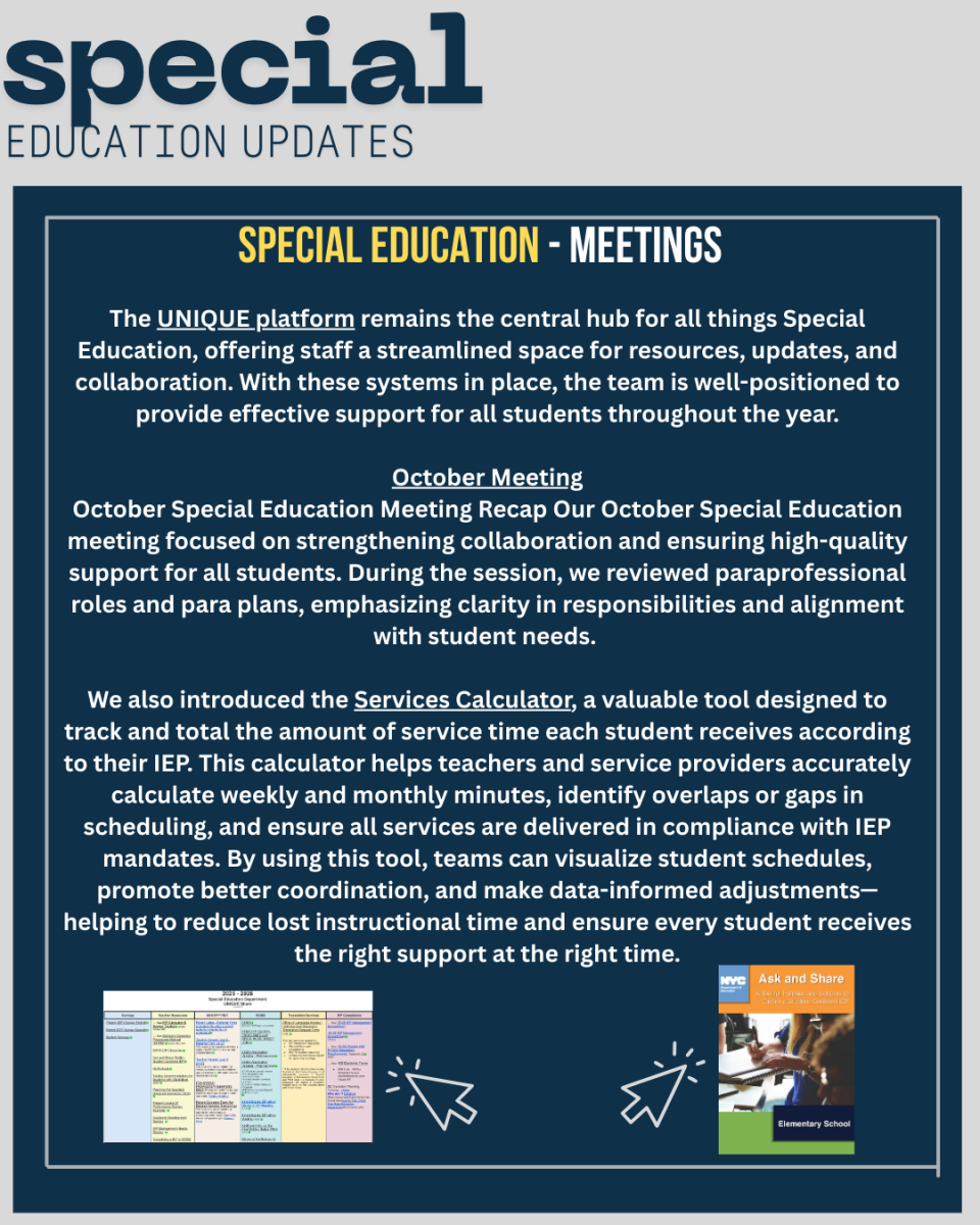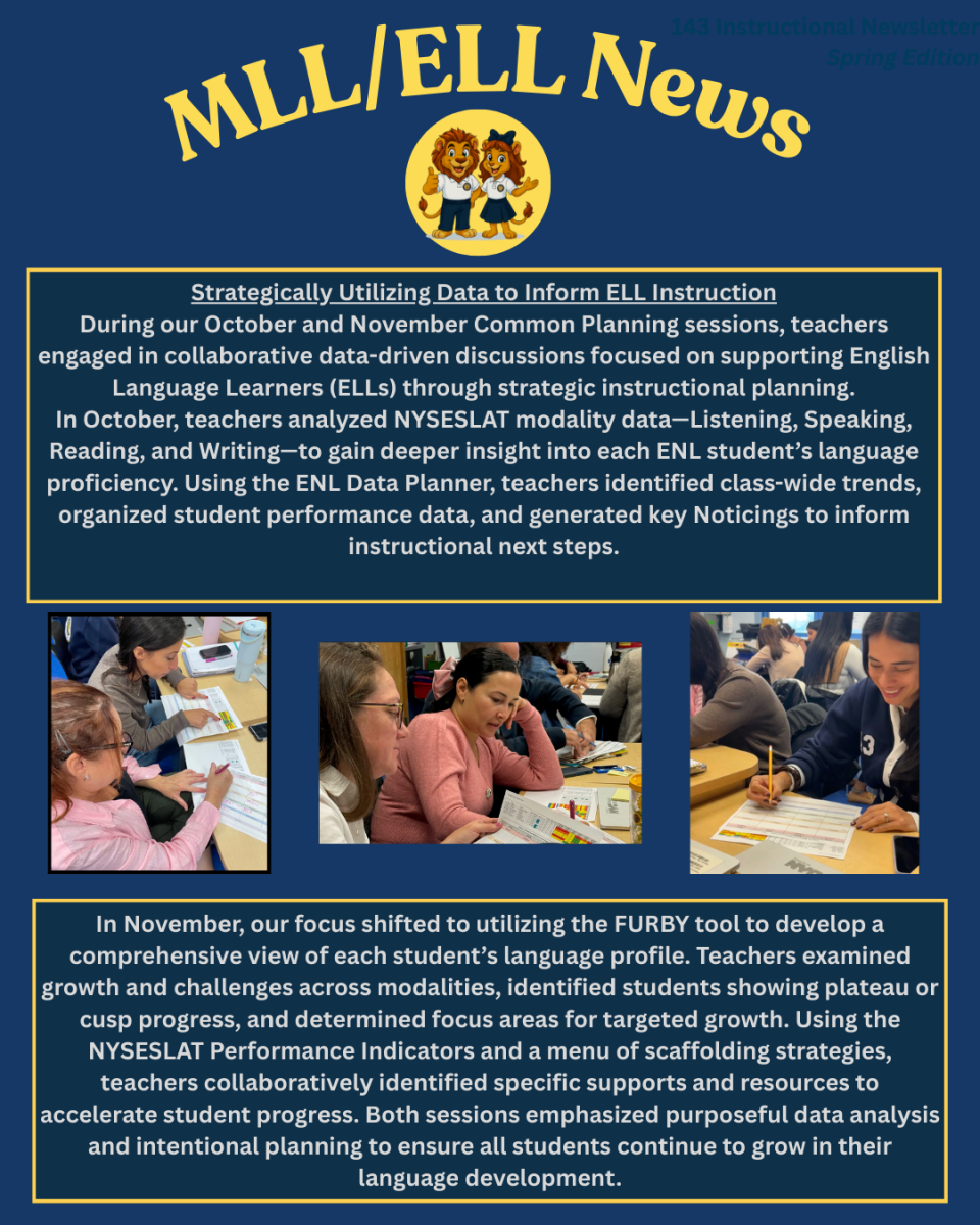 Here’s a behind-the-scenes look at the dedication, collaboration, and passion that drive teaching and learning at P.S. 143Q. Through common planning sessions, our teachers work together to strengthen instruction, design meaningful learning experiences, and ensure that every student—including multilingual learners and students with disabilities—is supported and challenged. This page highlights the thoughtful work our educators do each day to reflect, grow, and meet the needs of all learners within our Pride.